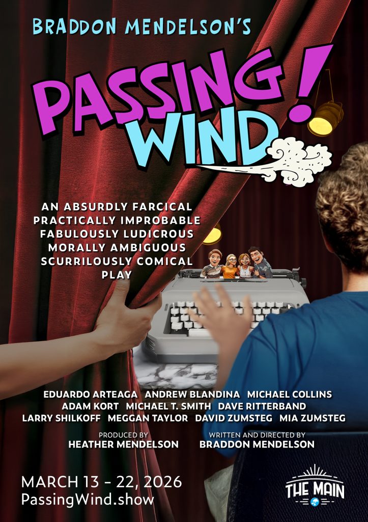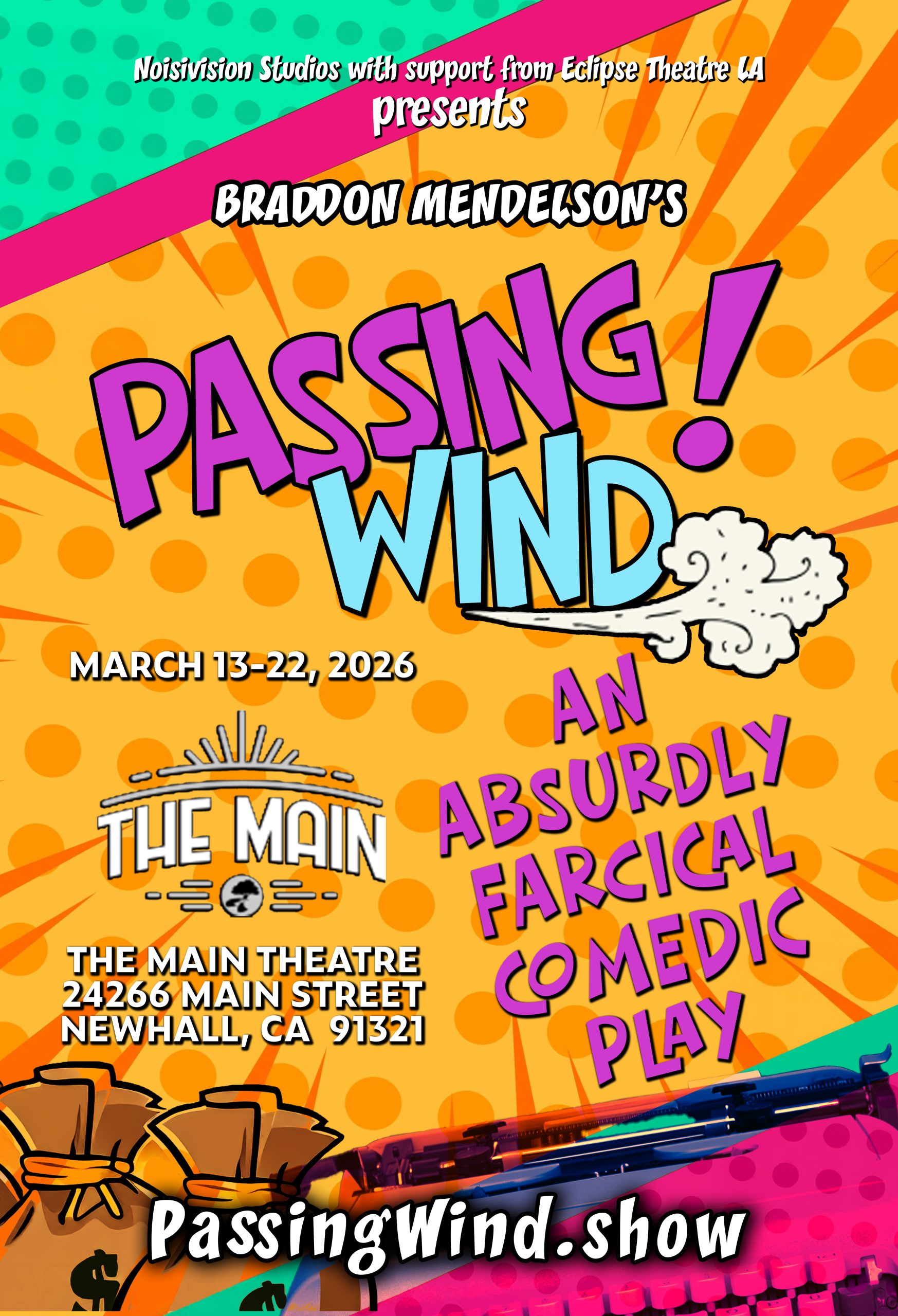 Passing Wind is a comical farce that tears down not only the fourth wall but the fifth wall as well, devolving into screwball madness. Two brothers join a caravan of characters who find themselves entangled in a play within a play within a world their fictional minds can scarcely grasp. Upon revealing themselves all to be playwrights who have authored the same play, they soon discover their scripts — and everything surrounding them — are merely props.